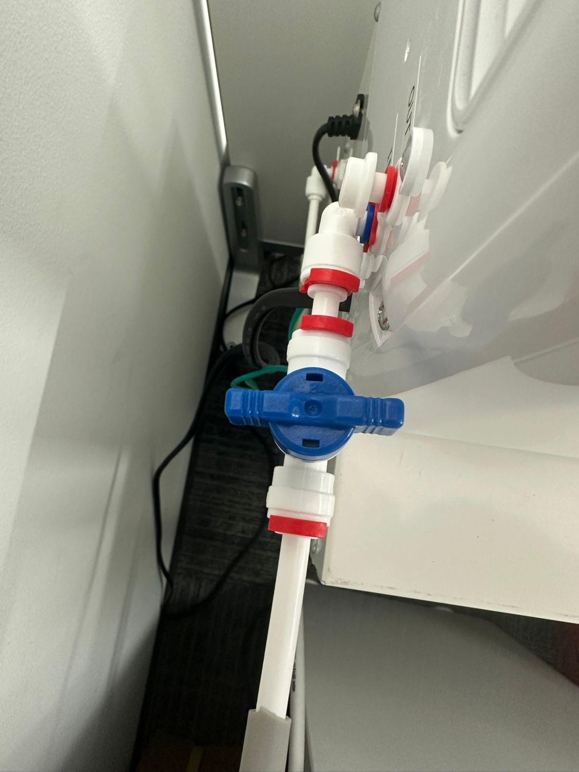 サーバー背面に接続されているチューブの根元に「青い色のつまみ」があるのを確認してください。